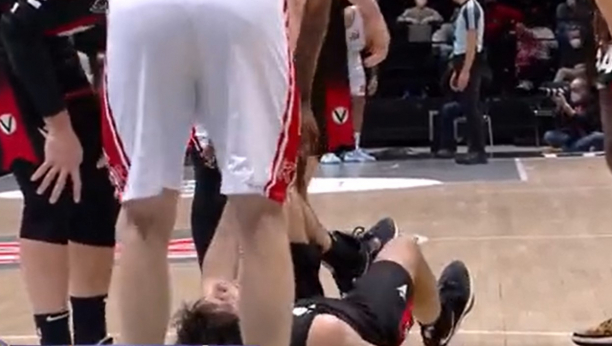 Košarkaškom svetu je zasmetalo to kako se Teo povredio! Njemu je noga proklizala na reklu zalepljenu na parket! I ovo nije prvi put da se igrač tako povrede.