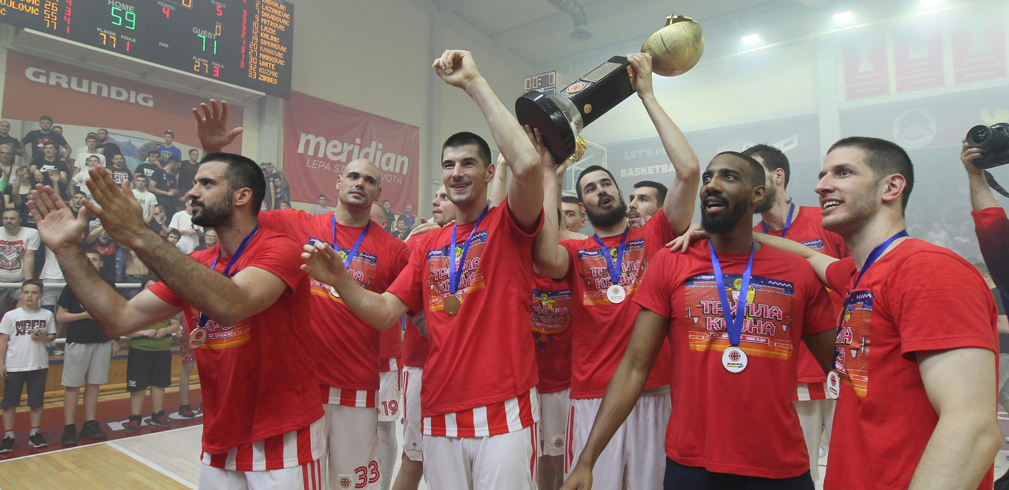 Šampioni Kupa Radivoja Koraća, šampiona Jadrana, a sada i šampioni Srbije. Crvena zvezda stavila je tačku na sjajnu sezonu i kompletirala triplu krunu pobedom nad FMP-om u Železniku. Nisu se crveno-beli mnogo pomučili kako bi ušli u istoriju srpske košarke kao prvi klub koji je stigao do 22. trofeja domaćeg šampionata. Do sada su delili prvo mesto sa Partizanom, a od večeras su usamljeni na vrhu.