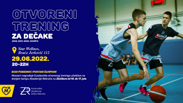 Dečaci koji sanjaju da krenu stopama čuvenog Željka Rebrače dobiće priliku da treniraju pred idolom, na otvorenom času košarke koji Akademija Rebrača organizuje u saradnji sa kompanijom Mozzart. Dvokorak ka ostvarenju snova za dečake koji imaju 14, 15, ili 16 godina, uz asistenciju proslavljenog asa naše košarke, zakazan je za sredu 29. juna od 20 do 22 časa u hali Star wellnes-a u Ulici braće Jerković 112 u beogradskom naselju Voždovac.