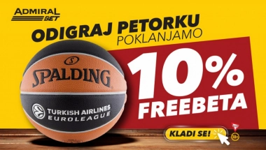 Kao i cele sezone do sada, i u ovom kolu je aktuelna promocija koja svim AdmiralBet igračima koji su odigrali tiket sa poenima za 5 ili više evroligaških igrača donosi sjajnih 10% freebeta od svakog uplaćenog tiketa. Dakle, svi registrovani na AdmiralBet.rs mogu da iskoriste ovu promociju, a registracija se može kompletirati u svega par klikova na ovom linku ili putem AdmiralBet Android ili iOS aplikacije. Sve novoregistrovane igrače očekuje 2000 dinara Bonusa dobrodošlice, bez depozita, dok prva uplata depozita sa sobom povlači dodatnih 100% bonusa u visini do 40.000 dinara.