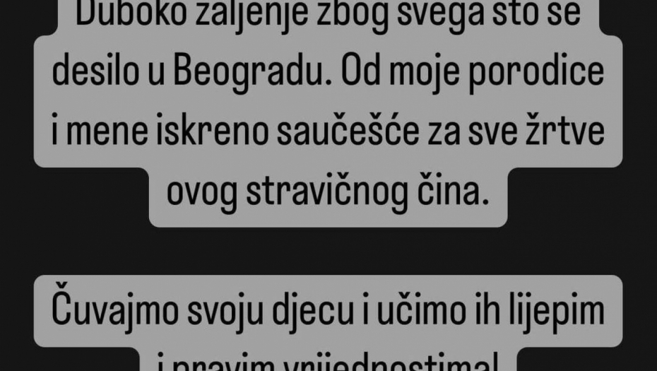 - Duboko žaljenje zbog svega što se desilo u Beogradu. Od moje porodice i mene iskreno saučešće za sve žrtve ovog stravičnog čina - napisao je Musa, a potom poslao poruku javnosti: