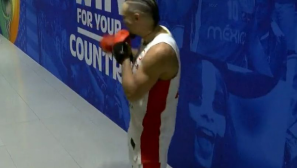 U tunelu nakon utakmice snimljen je upravo Bruks kako dočekuje trenere i igrače u bokserskim rukavicama i sa bokserskim potezima.