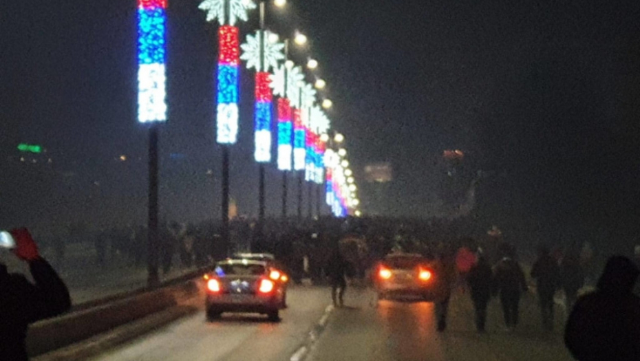 Uz pesmu i sa srpskim zastavama, kolona je krenula beogradskim ulicama.