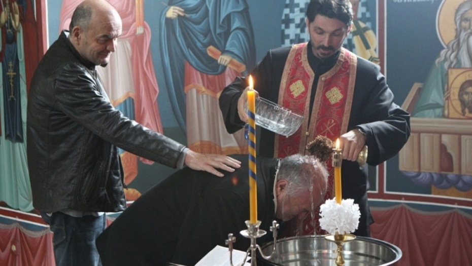 - Jao, polivaće me hladnom vodom po glavi, neće valjda da bude strašno - prokomentarisao je Miša, a okupljeni su ga uveravali da to nije ništa strašno i da samo uživa u jednom od najvećih hrišćanskih tajni.