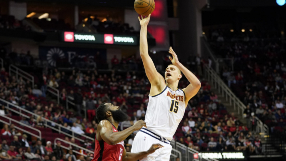Nikola Jokić je upisao tripl-dabl od 19 poena, 12 skokova i 10 asistencija za Denver Nagetse, koji su pali protiv Hjuston Roketsa 121:105 u borbi za što bolju poziciju na vrhu Zapada.