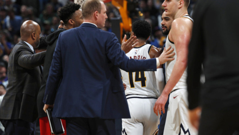 Košarkaši Portland Trejlblejzersa pobedili su Denver Nagetse 97:90 u Pepsi centru i "brejkom" izjednačili na 1-1 u polufinalu Zapada NBA plej-ofa. Meč je obeležio i haos na terenu u finišu utakmice.