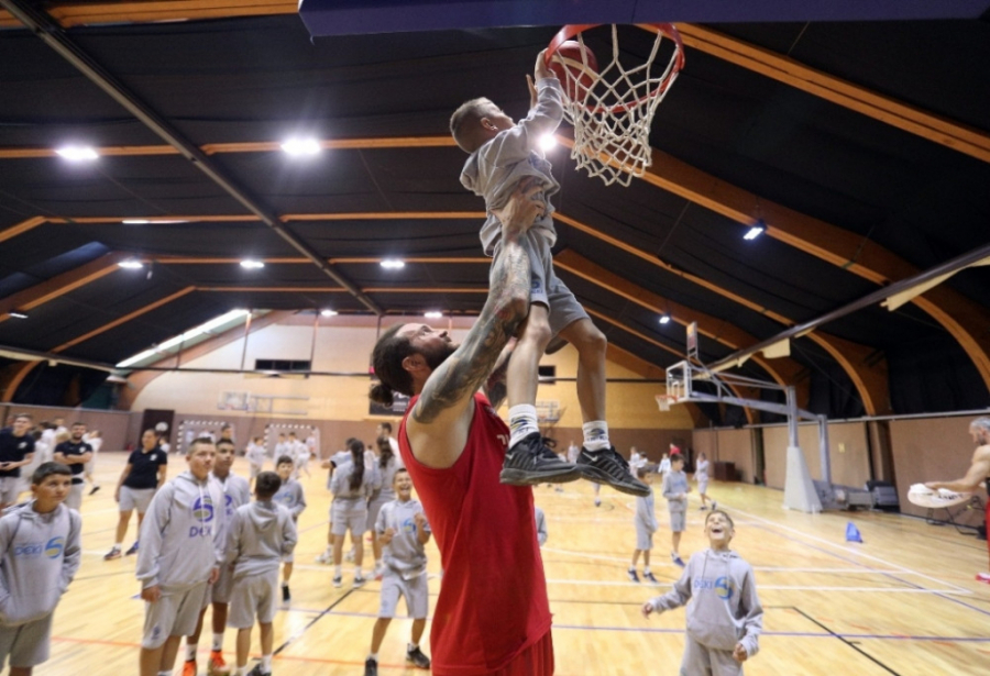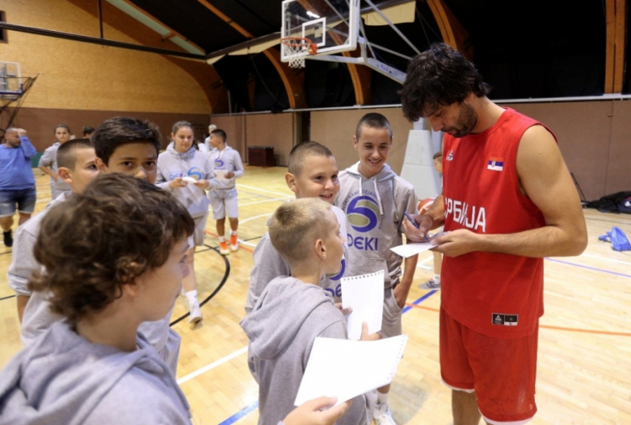 Oduševljeni mališani su imali priliku da se druže sa našim najboljim košarkašima, ali i da se na kratko okušaju u igri pod obručima u društvu Teodosića, Raduljice, Bjelice i ostalih igrača.