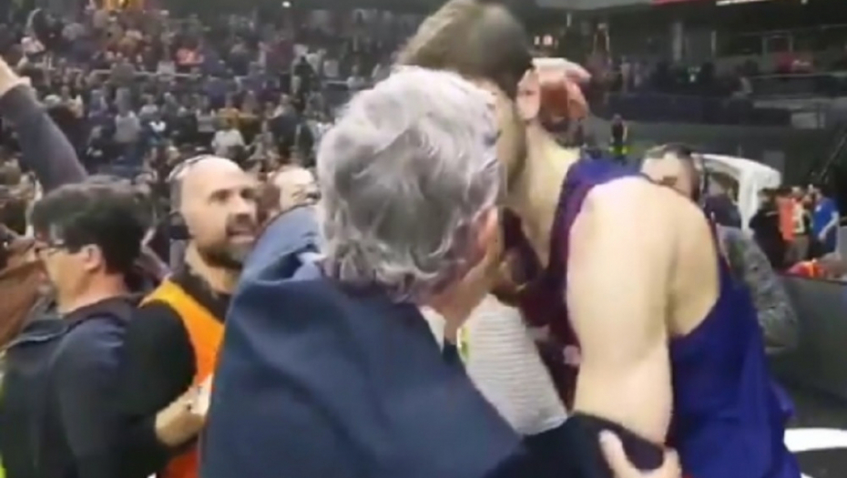 Legendarni srpski trener i hrvatski košarkaš slavili pobedu, a onda su morali da se izljube! DVA ILI TRI PUTA? Pogledajte! (VIDEO)