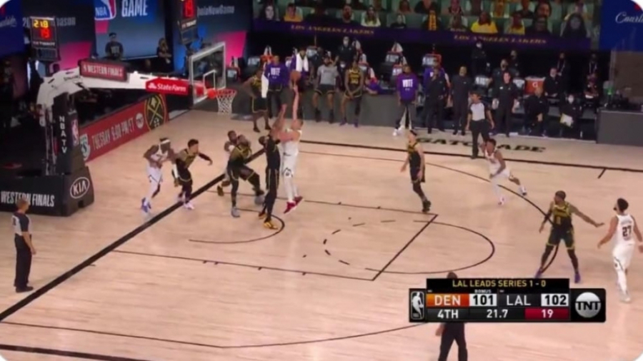 Tada Jokić uzeo stvari u svoje ruke i sa 13 poena zaredom doneo je Denveru prednost pred poslednji napad, 102:103. Tim iz Kolorada uspeo je da odbrani napad, ali je lopta ostala u posedu Lejkersa jer je Marej blokirao Grina.