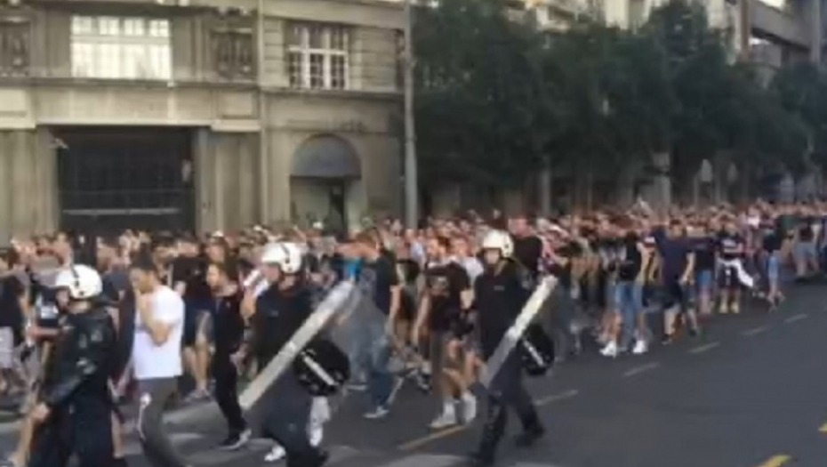 Koliko im je stalo do toga, kao i do eventualog povratka titule u petom meču, svedoči snimak napravljen na "Terazijama", kada je korteo Partizanovih navijača krenuo ka dvorani "Aleksandar Nikolić".