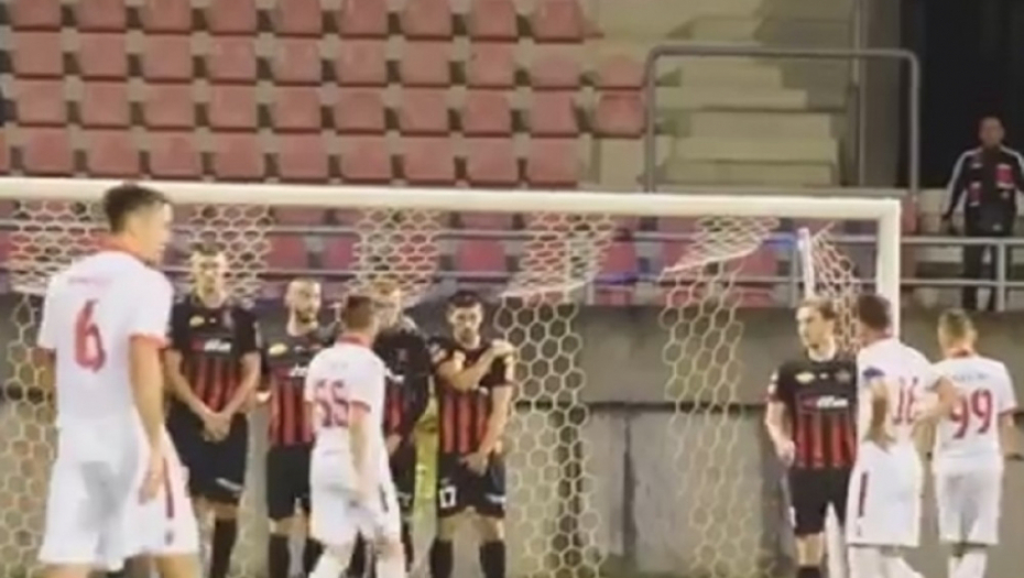 Naime, "živi zid" je bio postavljen tako da nije branio ništa! Igrači Slobode su ga napravili posred gola, ne pokrivajući ni levi, niti desni ugao gola, a pritom je golman domaćih bio zaklonjen (za šta je najveći krivac).
