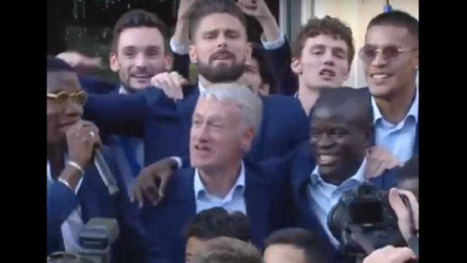 Kante se našao u zagrljaju selektora Didijea Dešana, a vidno je bio iznenađen kada su svi igrači počeli vokalno da prate Pogbu.