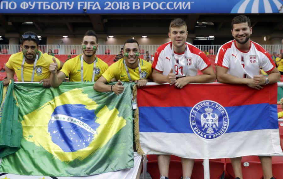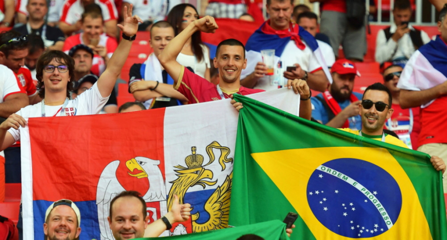 19.42 - Kako javlja specijalni izveštač "Alo!" sa stadiona u Moskvi, Dragutin J. Bužić, tribine će biti dupke pune. Srpski navijači daleko su glasniji od Brazilaca.