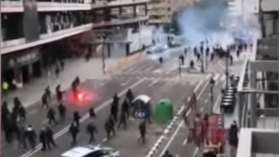 Na video snimku koji je postao viralan na društvenim mrežama vide se uznemirujuće scene sa ulice Valensije i ozbiljna tuča navijača, a u sukobu su korištene baljke, palice, stolice i ostali opasni predmeti.
