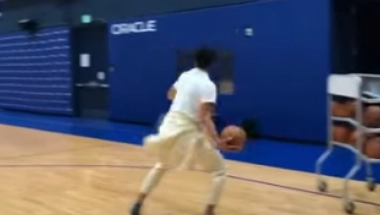 Sa celog terena i to jednom rukom... Mnogi su se zapitali da li je ovo zaista šut Stefa Karija ili neka foto montaža, ali... Način na koji Kari već godinama pogađa koš jasno pokazuje da je sposoban za ovako nešto.