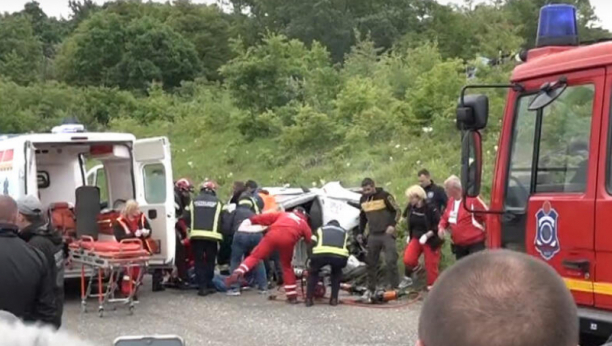 Trka klase 1 (jugići) je prekinuta, povređenog vozača pripadnici vatrogasno-spasilačke jedinice izvukli su iz smrskanog automobila.