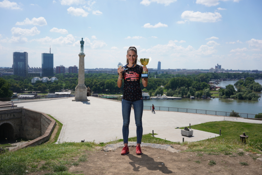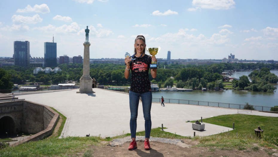 Dan posle velikog trijumfa na 34. Beogradskom maratonu, Nevena Jovanović je na poziv Alo! s peharom i medaljom domarširala do „Pobednika“ na Kalemegdanu.