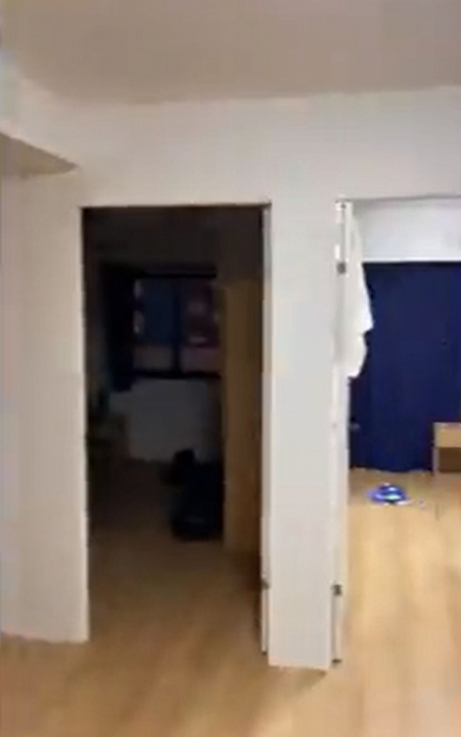 U sobi je jedan stočić i jedan otvoreni ormar za garderobu i to je sve.