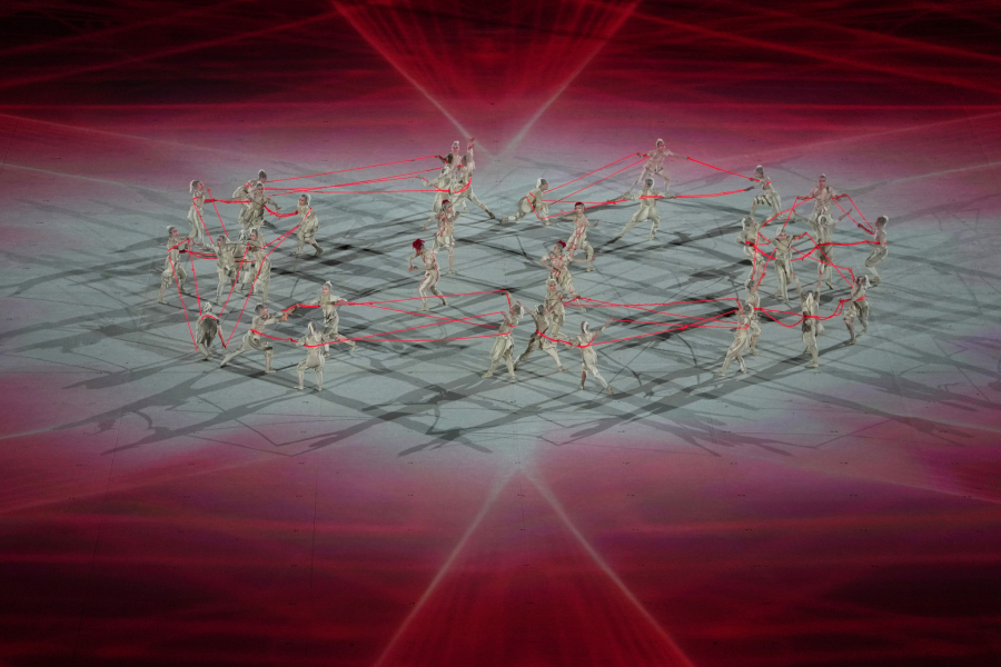 15.52 - Ponovo smo prešli na umetnički deo programa, Japanci su se potrudili da to izgleda spektakularno, tako da je van stadiona od dronova napravljena Zemlja!