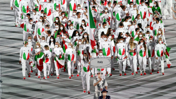 Olimpijci Italije okupili su se na dan otvaranja Igara da predsedniku države Serđu Matareli čestitaju rođendan - 80!