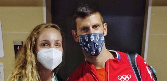 Slikali su se sa maskama, pa su mnogi pomislili da je u Tokio stigla Novakova supruga Jelena, zbog sličnosti.