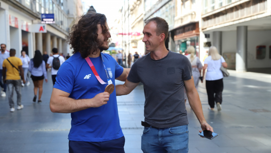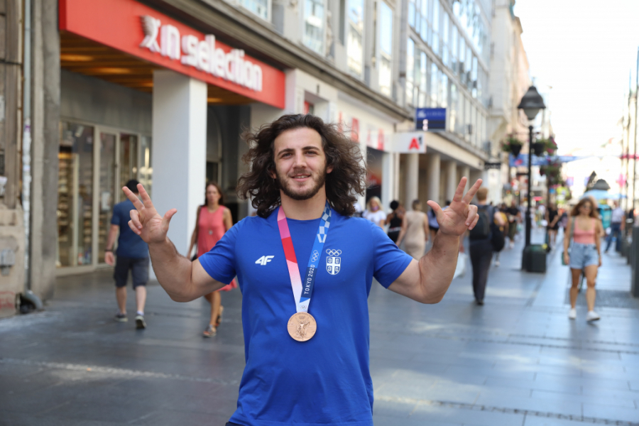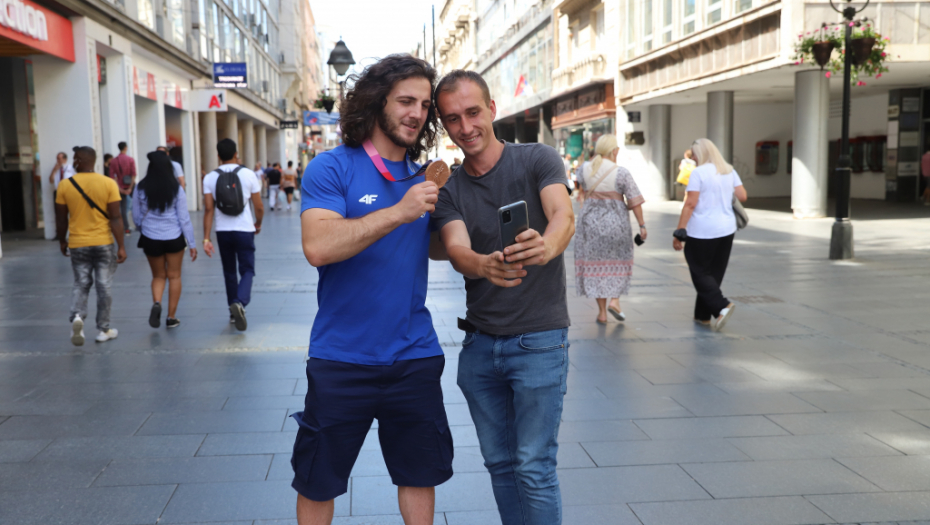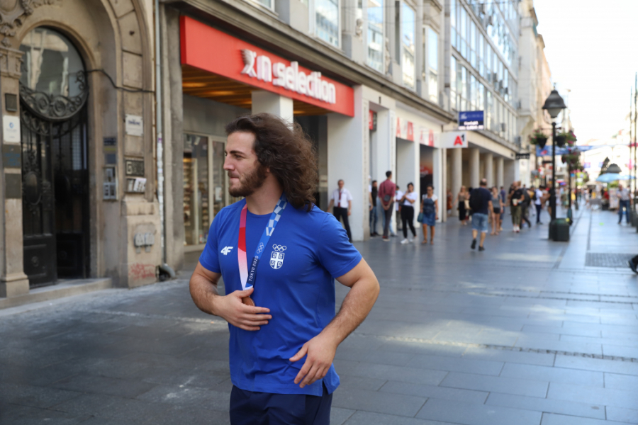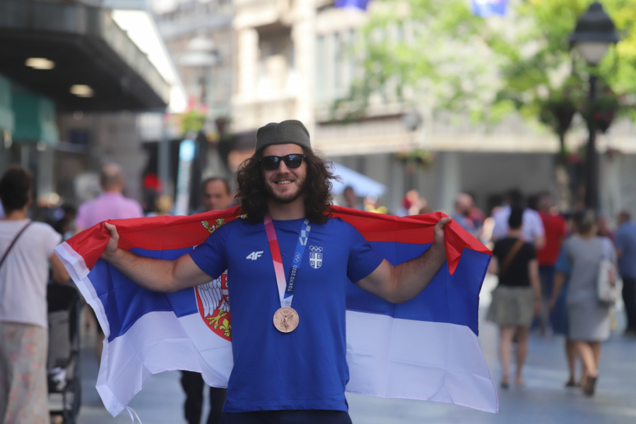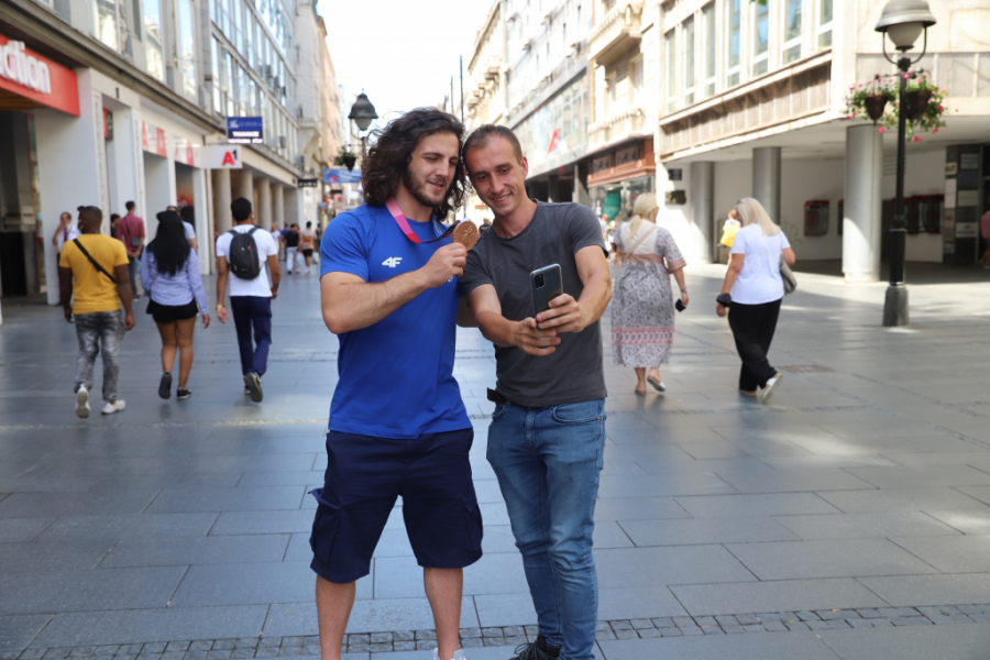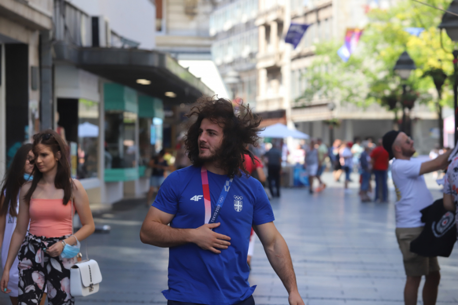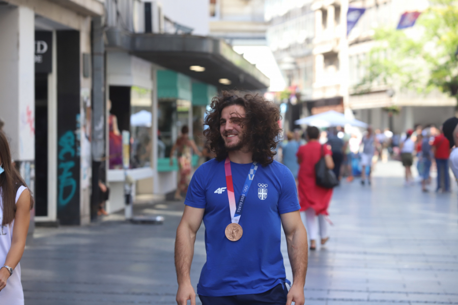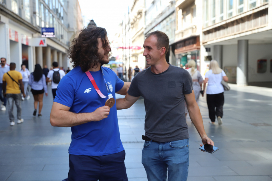 Da je ovaj momak preko noći postao jedan od sportskih heroja nacije, mogli smo da se uverimo u srcu Beograda. Prolaz kroz Knez Mihailovu trajao je dugo, momka duge kose zaustavljali su i stari i mladi, tražili autograme, selfije i svi redom mu čvrsto stiskali ruku i tapšali ga po ogromnim ramenima.