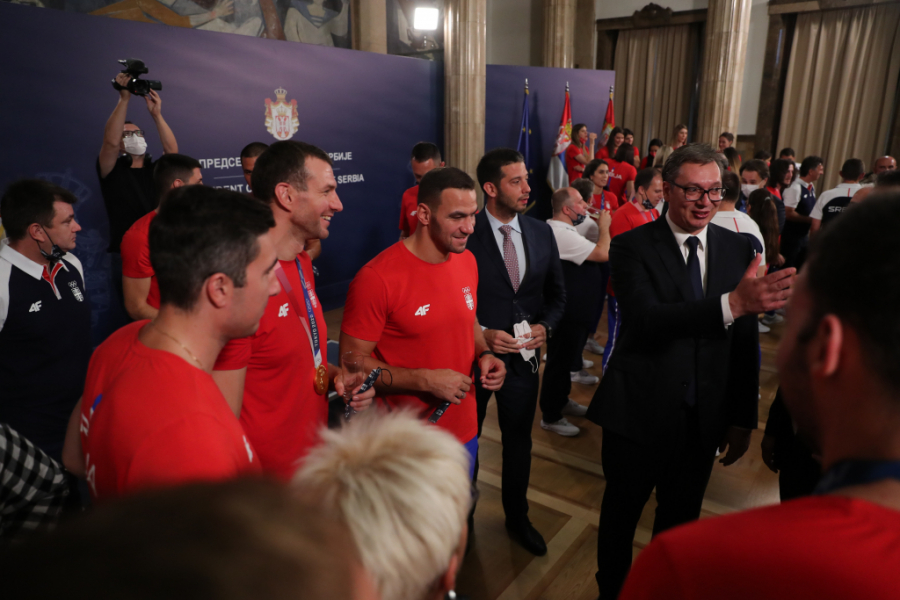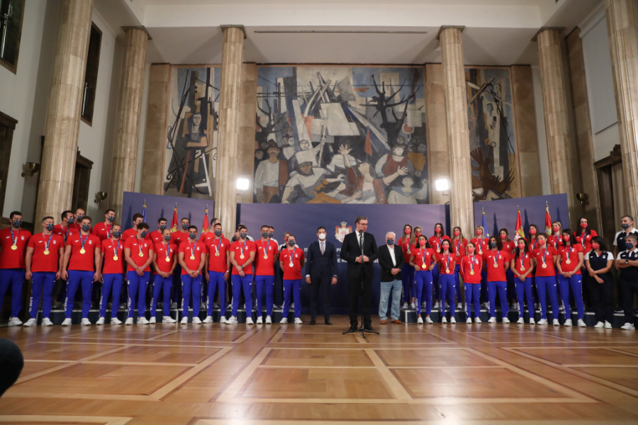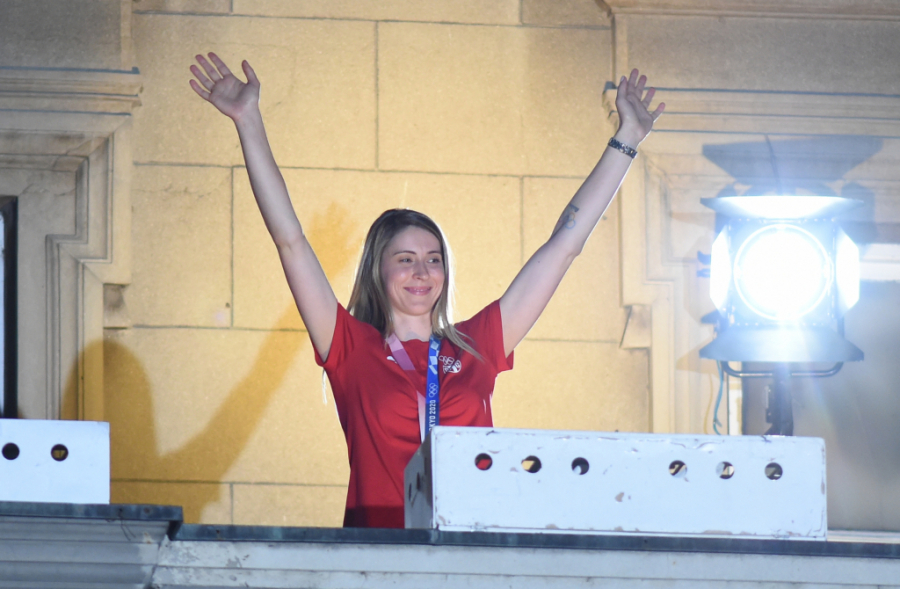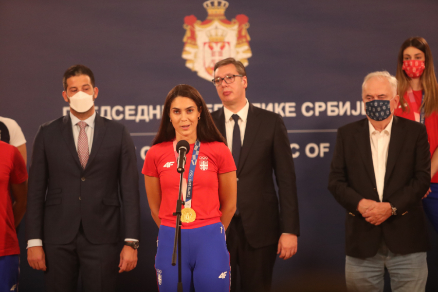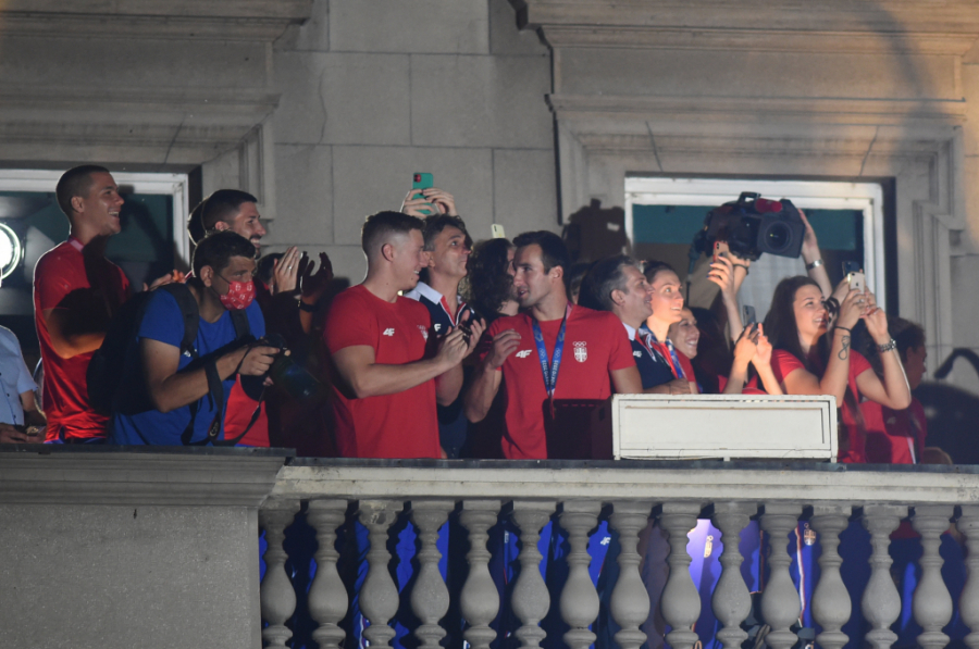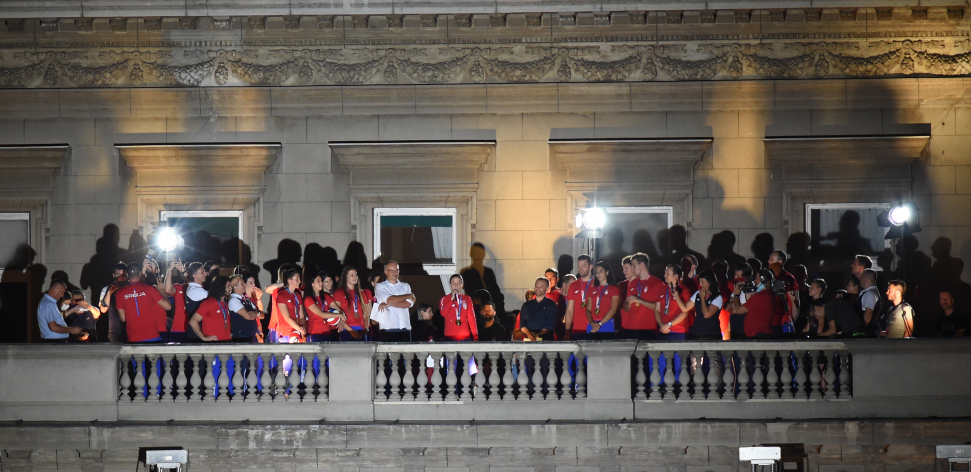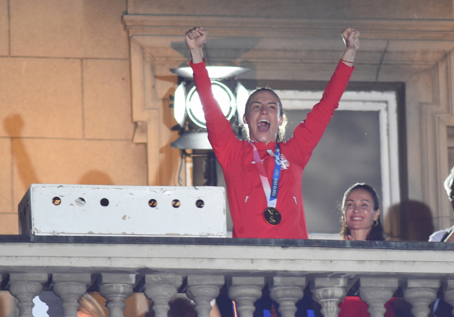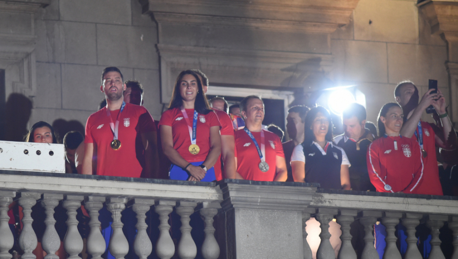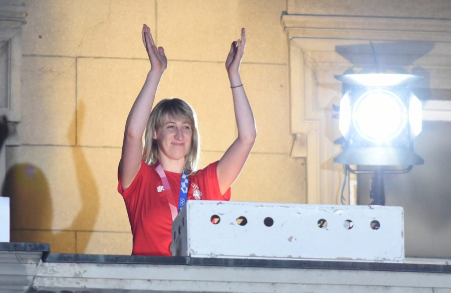 - Dobro veče Srbijo, mislila sam da će svako obraćanje na balkonu biti sve lakše, ali je ipak sve teže. Želela bih da se zahvalim na bezrezevnoj podršci i ljubavi koju osećamo svakog momenta dok igramo. Nadamo se da ove medalje pružaju vama ljubav i podršku koju vi pružate nama