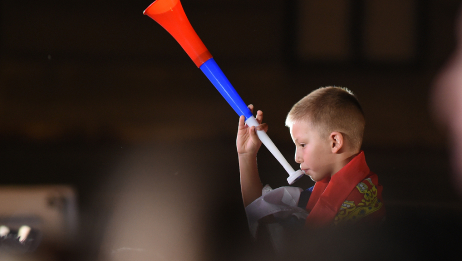 Uskoro počinje i zvaničan program, a dok se ne pojave sportisti, okupljene navijače pesmom uveseljava Milica Todorović. Odjekuje i pesma "Ko da mi otme iz moje duše Kosovo".