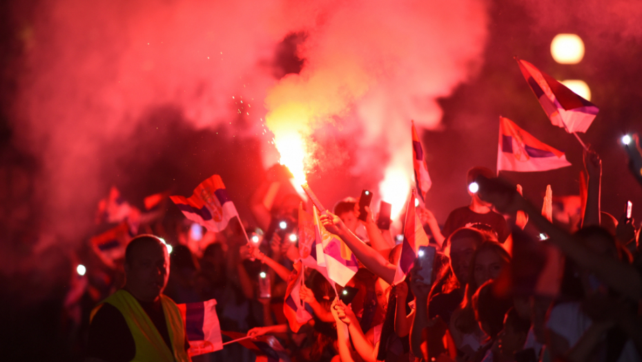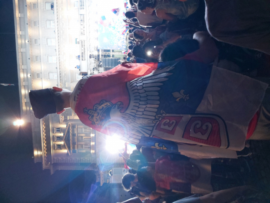 Posebno je bilo zanimljivo kad se na balkonu pojavila Milica Mandić. Tekvondistkinja je izašla sa zlatom oko vrata, a potom su među okupljenim ljudima upaljene baklje.