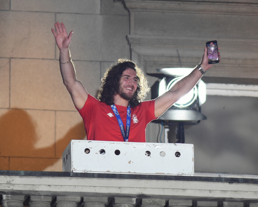 Zatim je izašao rvač Zurabi Datunašvili, a on se odmah obratio na srpskom sa: Hvala puno, živela Srbija. Iza njega je izašao Stojan Dobrev, selektor rvačke reprezentacije.