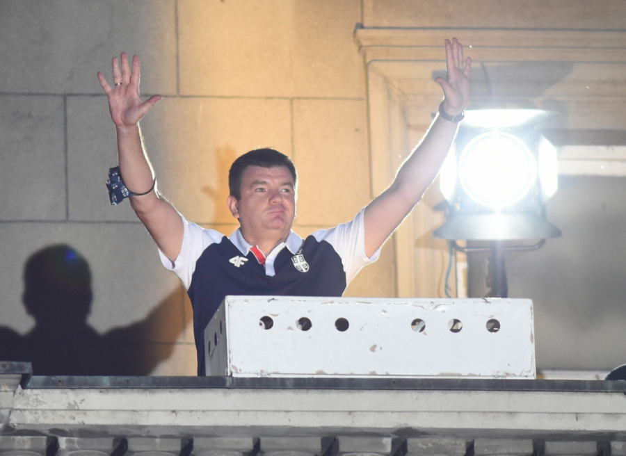 Na balkon je prvi izašao je Milenko Sebić. Za njim Dragan Donević, selektor streljačke reprezentacije Srbije. Odmah potom se na balkonu pojavila i Tijana Bogdanović kada je krenulo skandiranje "Tijana, Tijana!". Zatim i selektor tekvondo reprezentacije Srbije Dragan Jović.