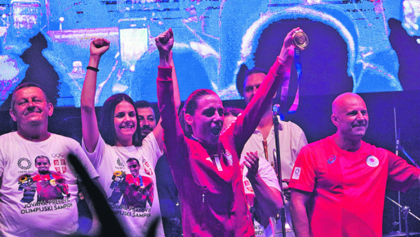 Pravo sa beogradskog balkona, Jovana Preković je u utorak uveče, pred ponoć, stigla u rodni grad, gde su je čekali muzika, pesma i vatromet. Najpopularnija pesma u Aranđelovcu ovih dana, kao i i za vreme preksinoćnjeg dočeka Jelene Preković, osvajačice zlatne medalje u karateu na Olimpijskim igrama u Tokiju, je - "Uzela si zlato Jovana, Jovanaaa!".