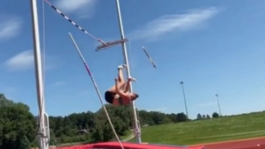 Uh, imala je sreće pa su joj sunđeri ublažili pad,jedan moj drug iz detinjstva je poginuo kada mu je motka pukla na treningu i nije imao sreće kao ova devojka.