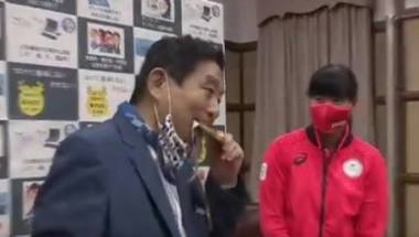 Zbog toga što je Kavamura zagrizao medalju, Goto je morala da dobije novu, preneli su mediji u Japanu.