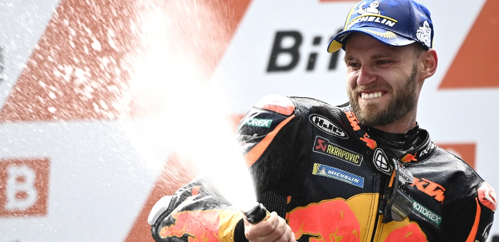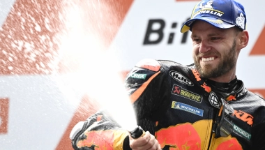 On je vozeći sa gumama za suvo na kišnoj stazi u Špilbergu, pobedio sa devet sekundi prednosti.