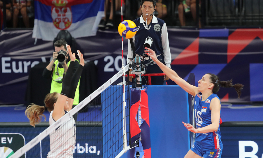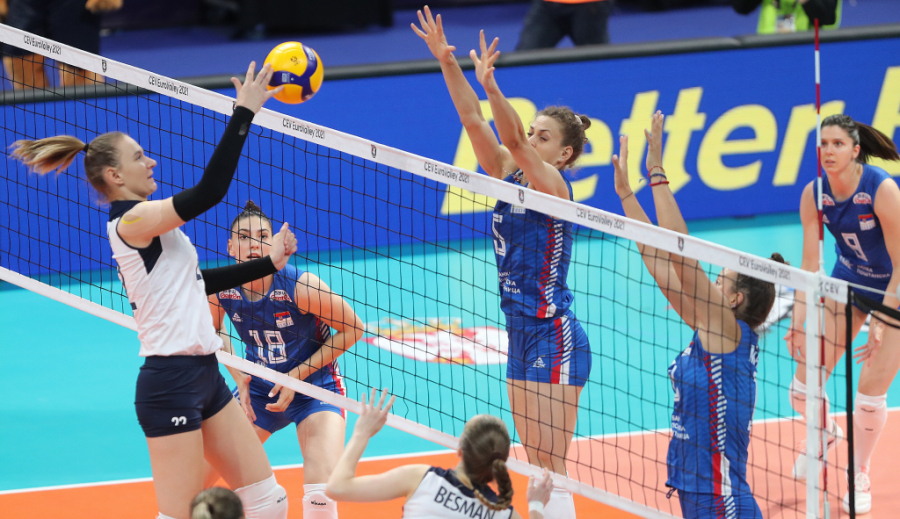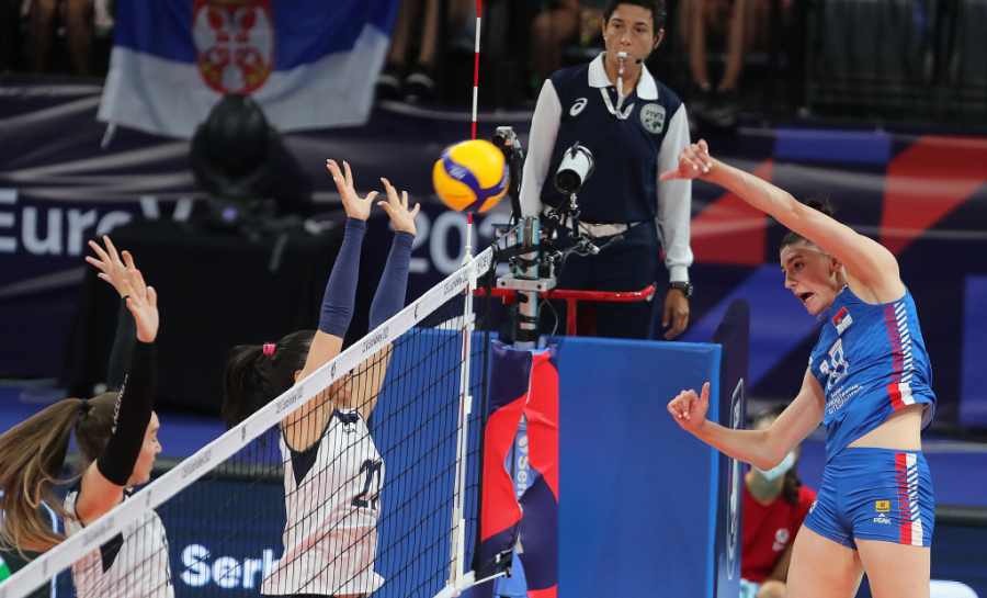 Ženska odbojkaška reprezentacija Srbije pobedila je selekciju Azerbejdžana sa 3:0 (25:17, 25:20, 25:19) u četvrtom kolu Evropskog prvenstva, u Štark areni.