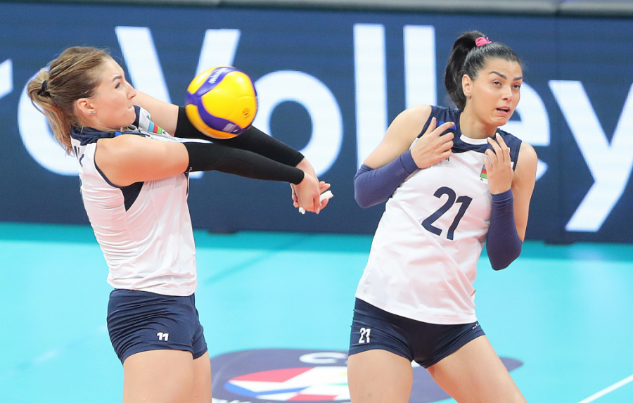 Na početku prvog seta igralo se u serijama, a Azerbejdžan se držao sve do 14:14, kada je usledila serija aktuelnog prvaka Evrope 9:1 kojom su rešile prvi set.