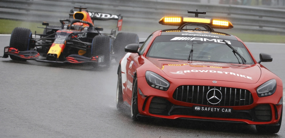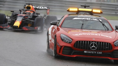 Vozilo bezbednosti predvodilo je trku, a onda posle dva kruga organizatori su povukli bolide sa staze.
