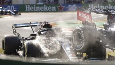 Incident se dogodio u 26. krugu trke za Veliku nagradu Italije, kada je Hamilton izlazio iz boksa. Došlo je do kontakta, Ferstapenov bolid je odskočio od ivičnjaka i popeo se na Hamiltonov.