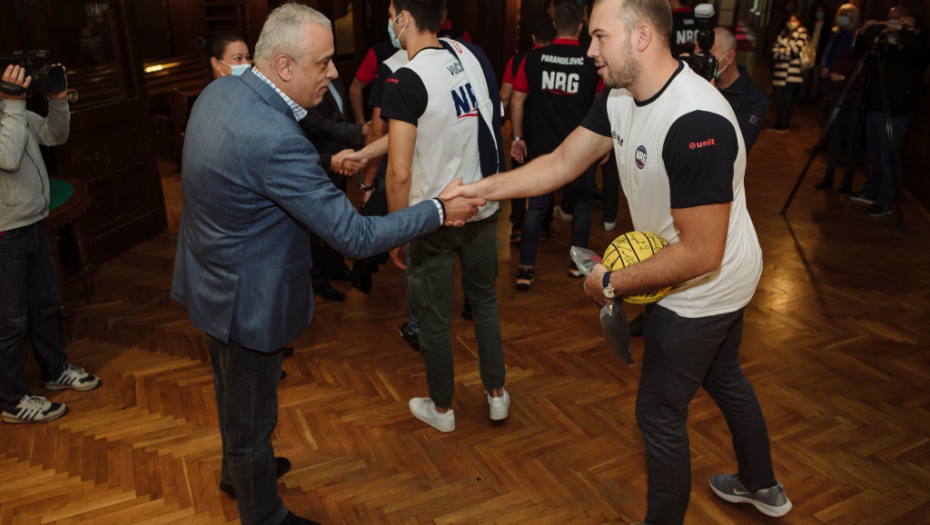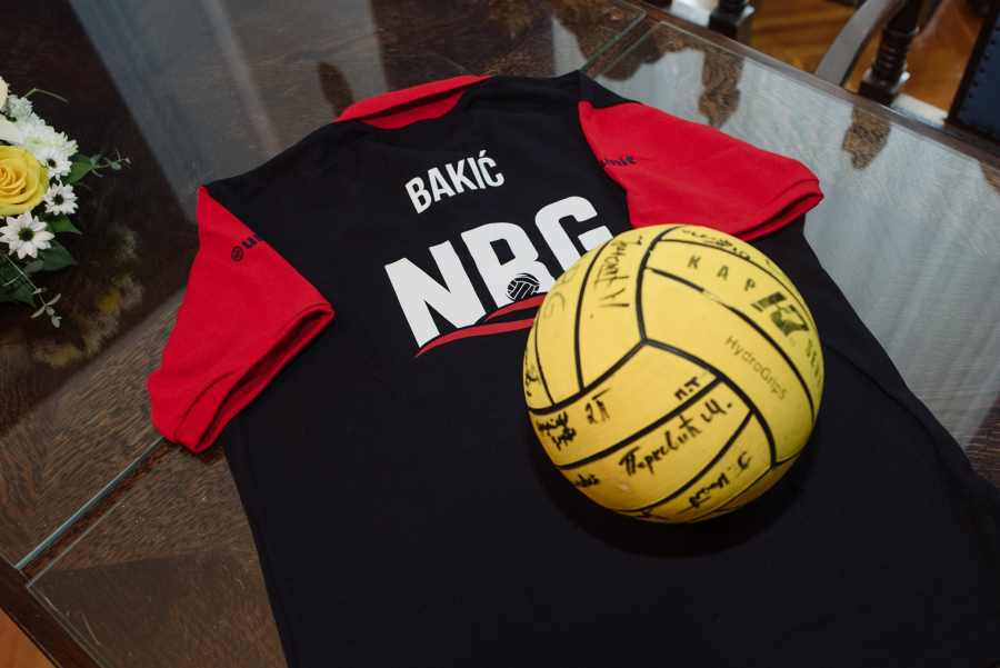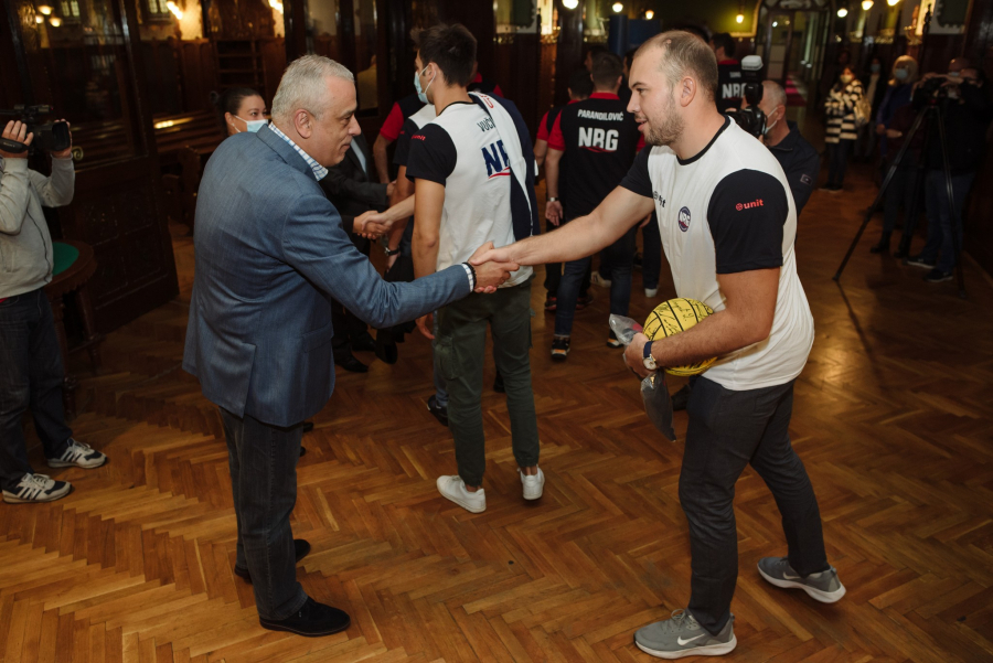 Uoči prijema u Plavoj sali Gradske kuće, kapiten naše vaterpolo reprezentacije Dušan Mandić je, u ime VK Novi Beograd, u Velikoj većnici Gradske kuće gradonačelniku Bakiću uručio dres ovog kluba i loptu sa potpisima igrača, stručnog štaba i rukovodstva VK Novi Beograd.
