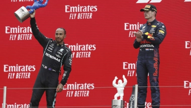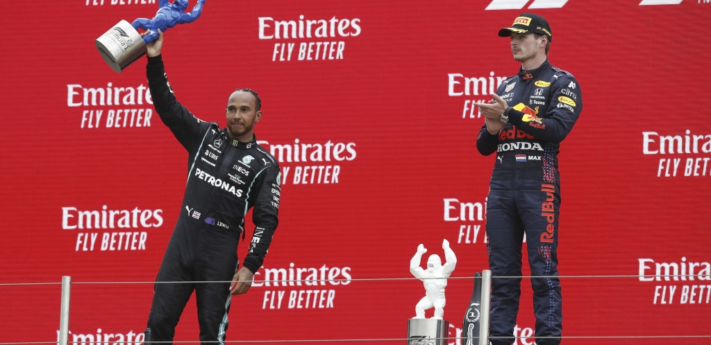 Hamilton je pretekao Ferstapena u ciljnoj ravnini, pre nego što su obojica krenuli u novi krug, tokom preticanja Ferstapen je izguran sa staze što mu nije lako palo.