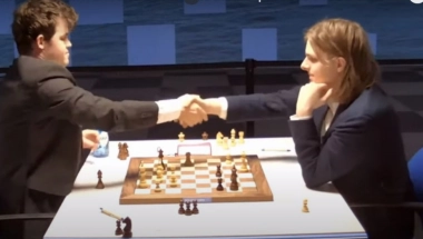 Svetski šampion je protiv Mađara krenuo odlučno i na jedan prost i jednostavan način pobedio. Pogledajmo partiju: 1. Nf3 d5 2. d4 Nf6 3. c4 e6 4. g3 dxc4 5. Bg2 Nc6 6. O-O Rb8 7. Be3 Bd6 8. Qc1 b5 9. b3 Bb7 10. bxc4 bxc4 11. Qxc4 Nb4 12. a3 Nbd5 13. Bg5 O-O 14. Nbd2 h6 15. Bxf6 Nxf6 16. Rfc1 Nd7 17. Qa4 c5 18. Qxa7 Bxf3 19. Bxf3 cxd4 20. Ra2 Qe7 21. a4 Rfd8 22. Qxd4 Rb4 23. Qc3 Nb6 24. a5 Qa7 25. Qe3