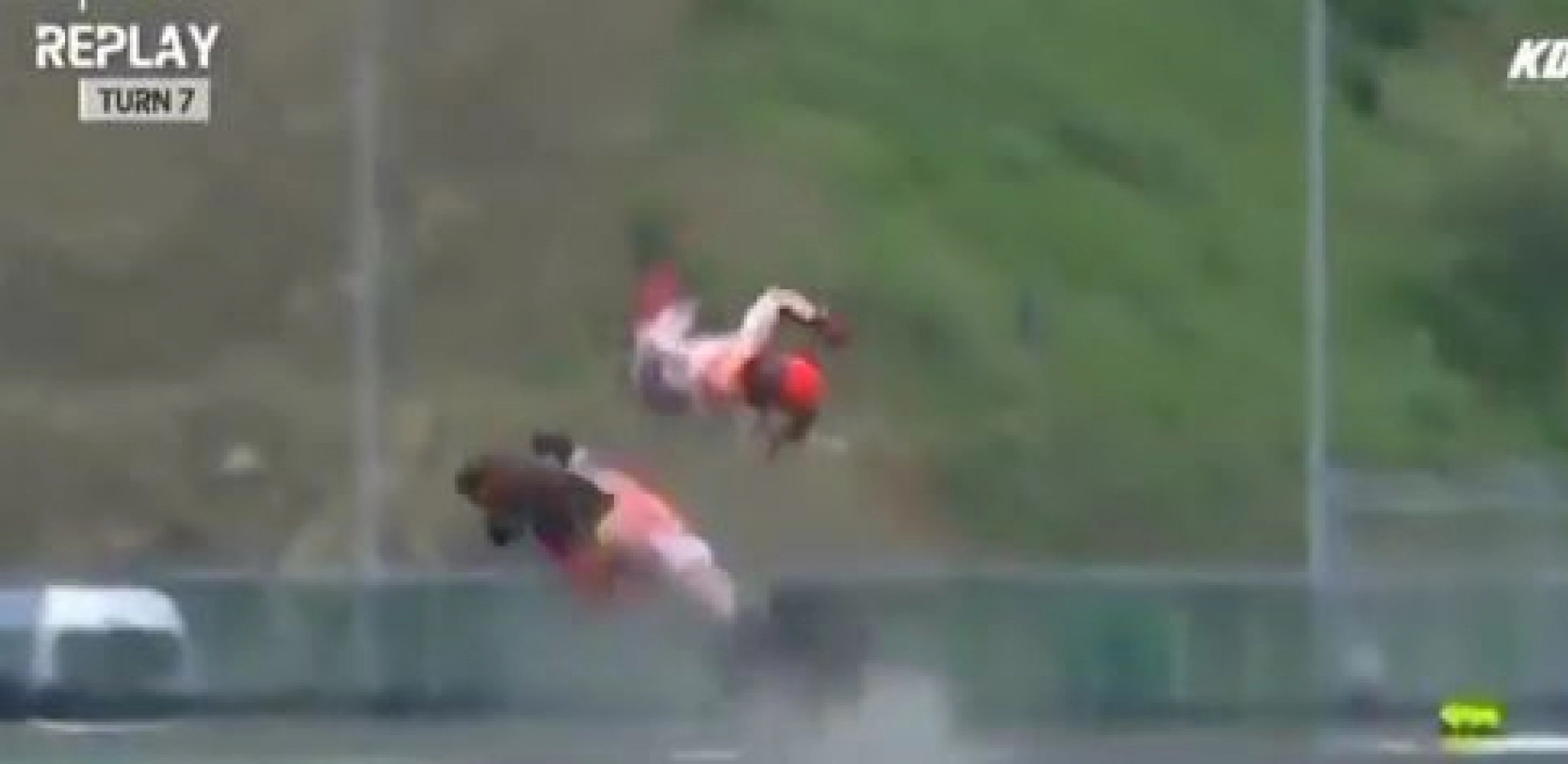 Markes je u finišu zagrevanja izgubio kontrolu nad motociklom, "odleteo" je u vis, a zatim je doživeo težak pad.