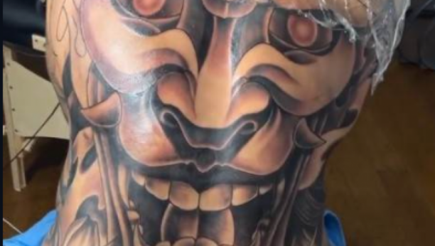 Istetovirao je japansku "Hanja" masku, koja simbolizuje mudrost i sreću. Tetoviranje je na kraju trajalo dva puta po 12 sati i posle 24 sata dobio je spektakularan rezultat!