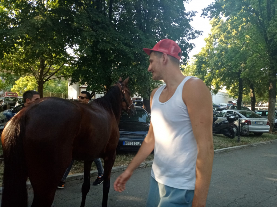 Jokić je danas imao dva predstavnik na Hipodromu, a na trke je došao u opuštenom stajlinug. Sa crvenim kačketom i treger majicom bele boje.