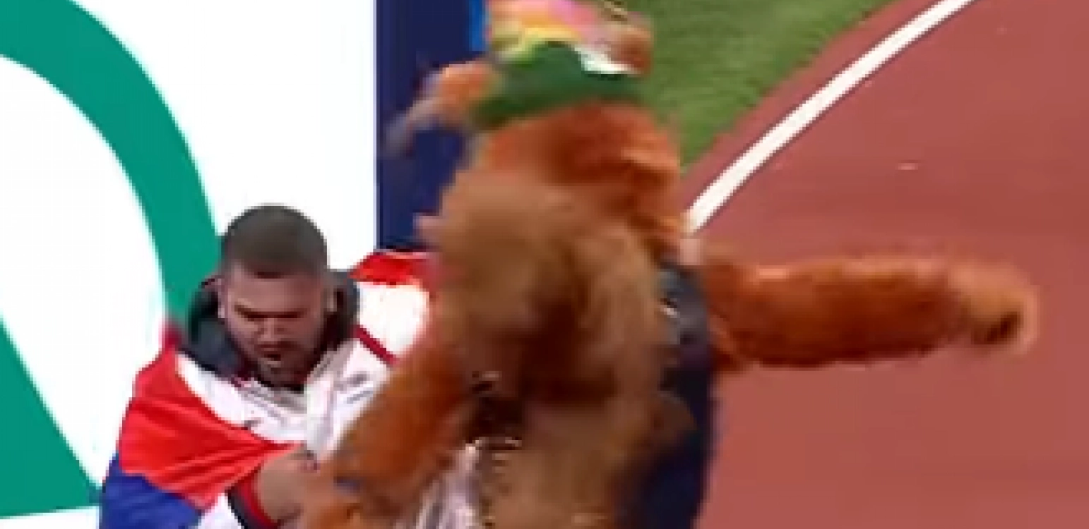 ŠTA OVO BI? Maskota udarila na našeg diva: Sudar i let na zemlju (VIDEO)