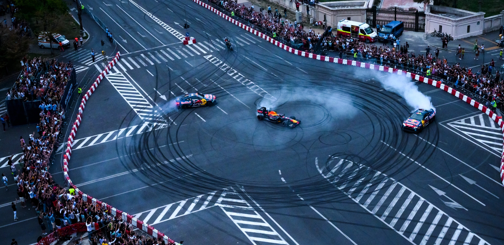 Publika će imati priliku da prisustvuje dvočasovnom programu na Trgu republike sa početkom od 13h na kome će bolid RB7 ulicama grada voziti legendarni britanski vozač Formule 1 Dejvid Kultard, dok će nemački tandem Red Bull Driftbrothers prirediti uzbudljiv automobilistički drift šou, kao i Litvanac Aras Gibiježa, specijalista za ,,stunt ride’’, koji će na svoja dva stunt motorcikla vrelim gumama zagrejati beogradski asfalt.