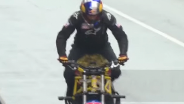 Pored njega, publika uživa i u potezima drugih vozača, a posebno se izdvojio jedan motocklista koji je izveo akrobatski potez.