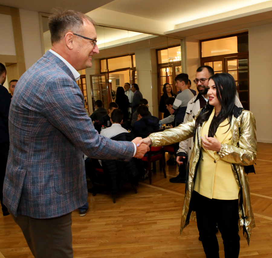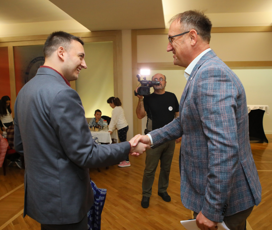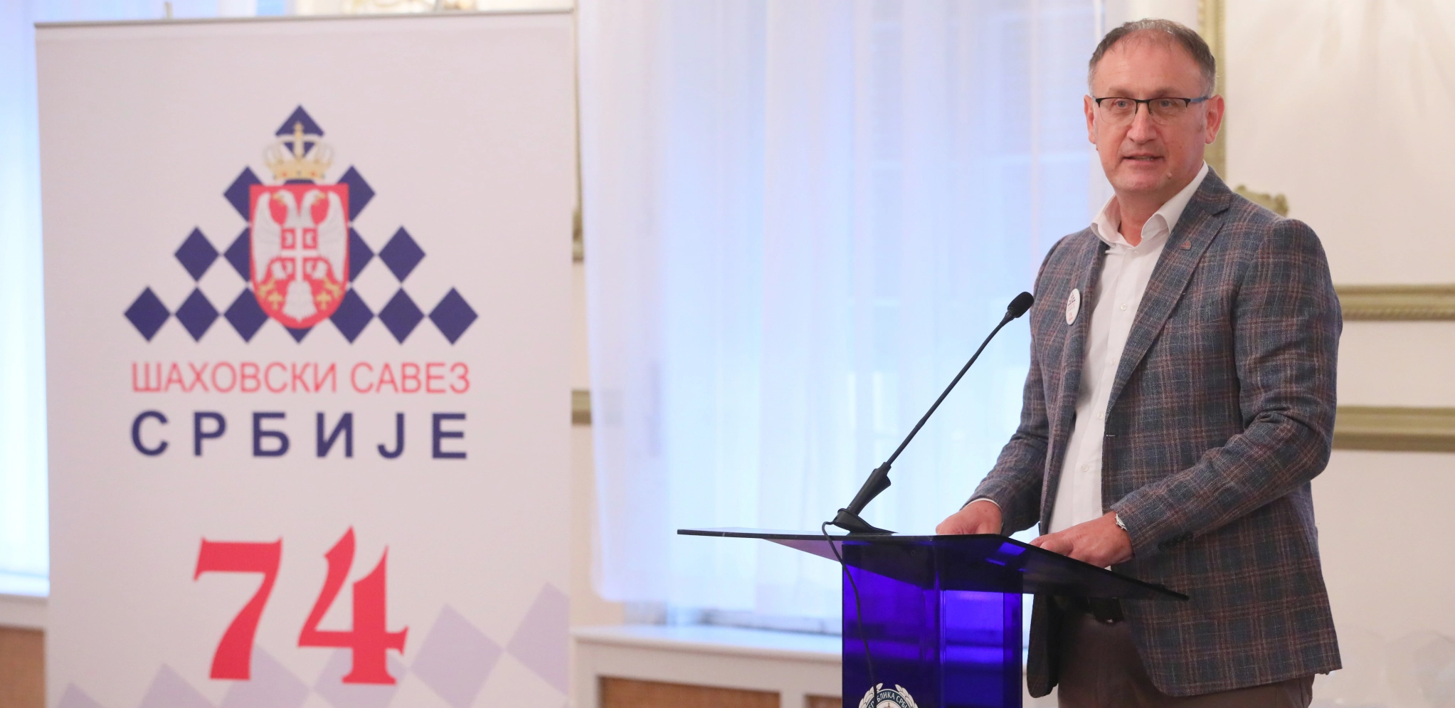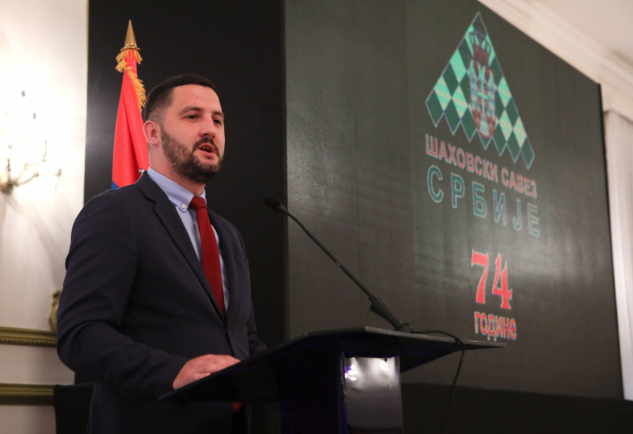 - U ime ministra Vanje Udovičića, vlade republike Srbije i svoje lično ime, čestitam vam prvih 74. godina Šahovskog saveza. Kroz istoriju viđeno je mnogo uspeha, puno uspona i padova, ali ono na šta smo mi danas ponosni jeste da se u poslednje dve godine beleži ozbiljan napredak. Ponosni smo da za dobar šah i dobre uspehe nisu potrebni samo novac i rad već su potrebni mladi entuzijasti i šahisti koje sam imao prilike lično da upoznam. Šah se vraća na velika vrata u Srbiju. Konačno možemo da se pohvalimo dobrim rezultatima. Mi ćemo kao država nastaviti da ulažemo, još više da pomažemo, a kada budemo slavili 80. rođendan da možemo da kažemo da smo organizovali Olimpijadu. Vaše je da sanjate i radite, a mi smo tu za vas.