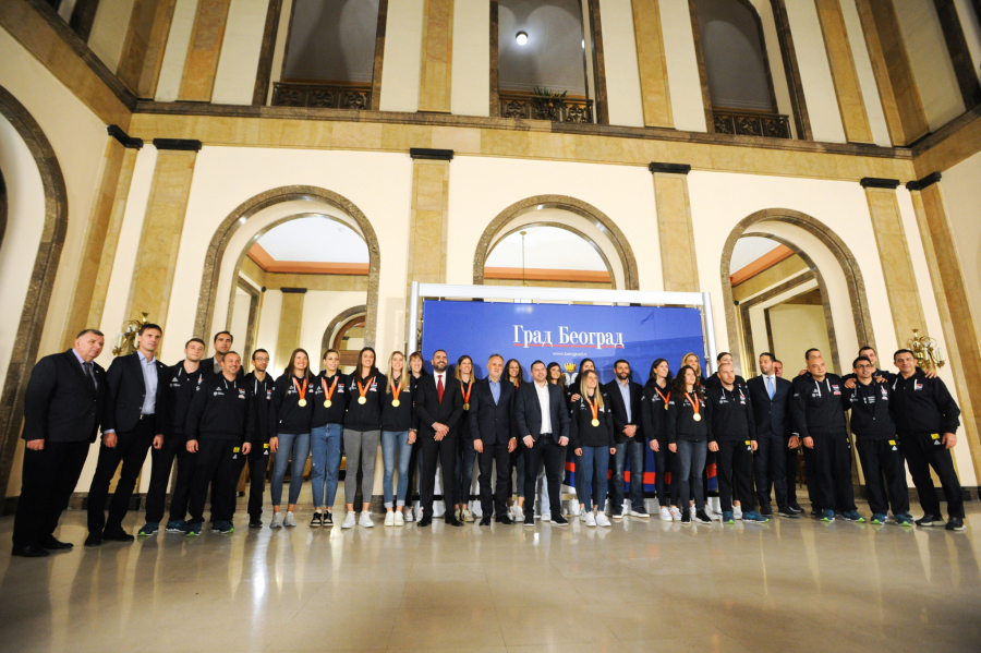 20.06 - Odbojkašice su stigle u Skupštinu, dočekuju ih čelnici grada.